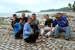Sugeng peduli lingkungan Pantai Terih Batam, dengan membangun toilet umum