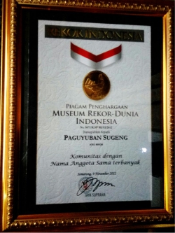 Paguyuban Sugeng mendapatkan penghargaan REKOR MURI